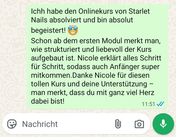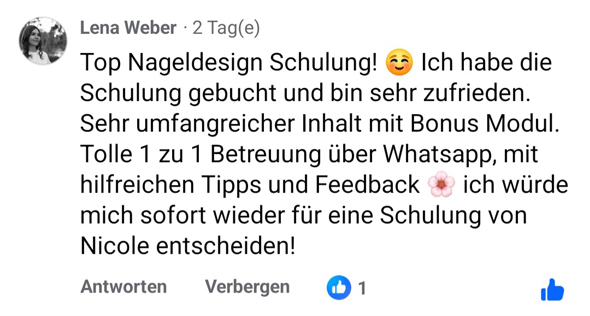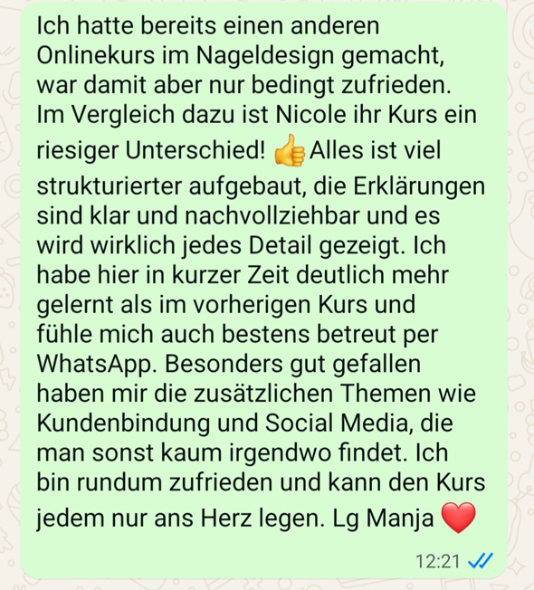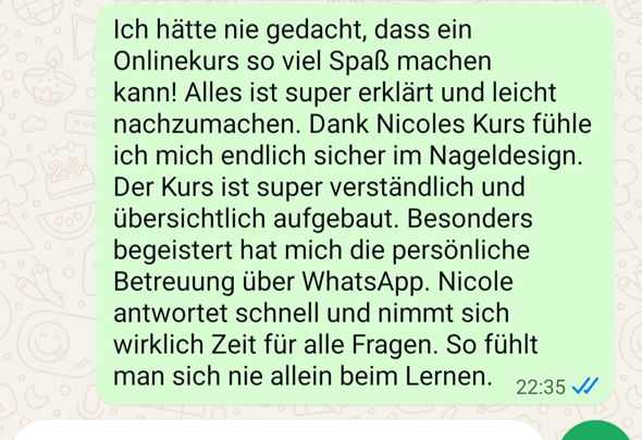 Beispiele was Teilnehmerinnen über meinen Nageldesign Onlinekurs berichten: